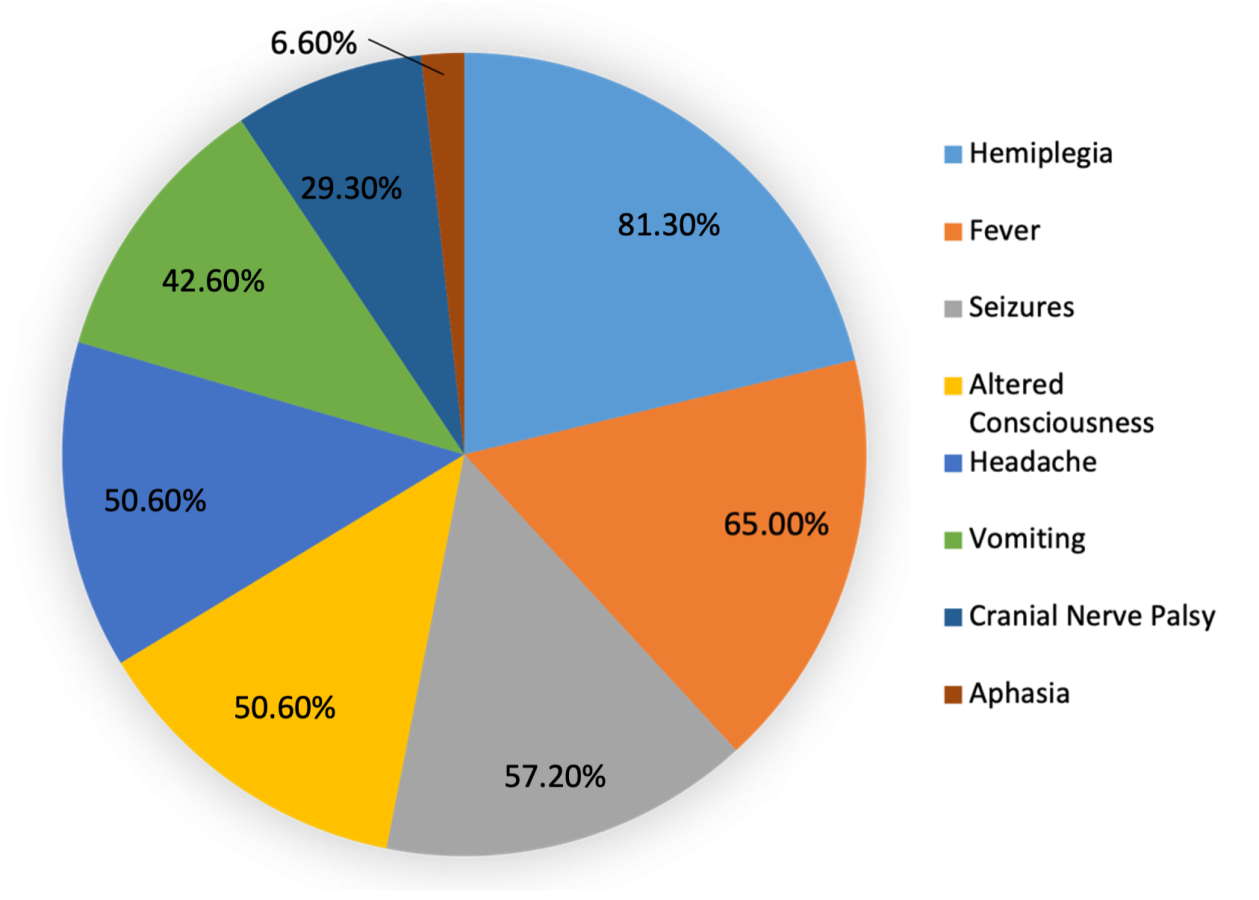 Figure 1. Pie chart to show clinical presentation of childhood stroke (% showing symptom)