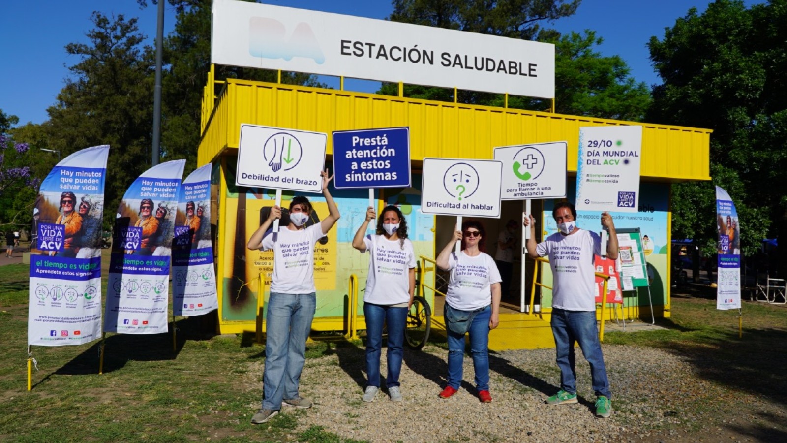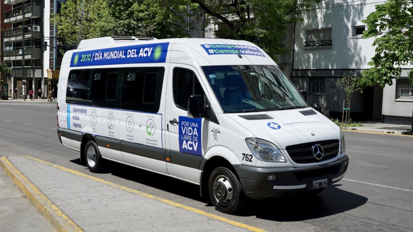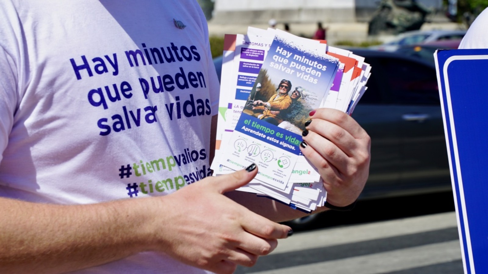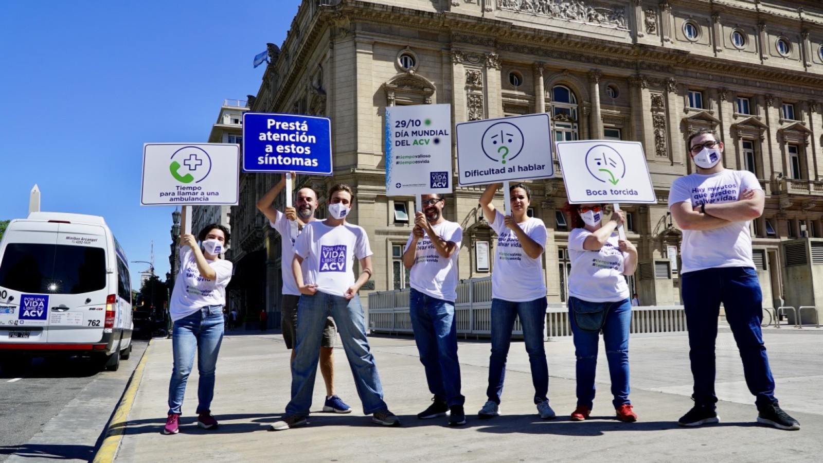 And the culmination of all the activities was the "on street" activities on World Stroke Day itself and the following day, to increase community awareness of stroke. The SSO toured the most crowded streets in Buenos Aires in a minivan advertising the campaign posters and with the messages "Hay minutos que pueden salvar vidas"and # tiempoprecioso y #tiempovalioso. This message was also brought to life at traffic lights, where five actors performed the signs of stroke test and distributed brochures for motorists to take home.