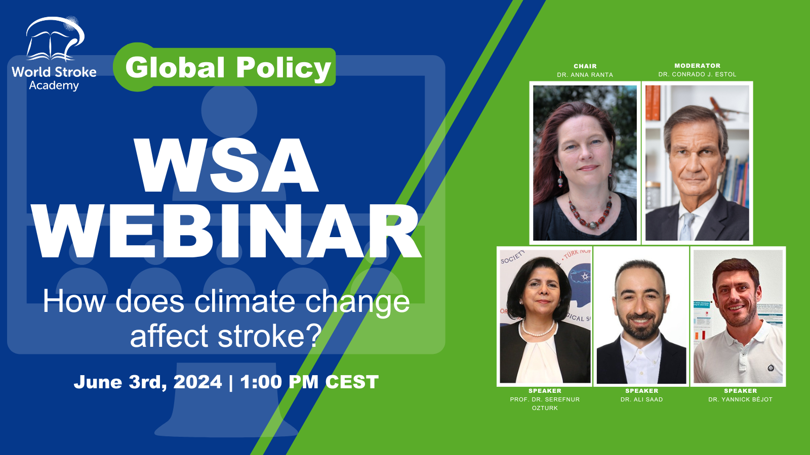 Description: Join us for a webinar where we delve into the crucial connection between climate change and stroke risk. In this session, we will investigate the intricate impacts of climate change on stroke occurrence and overall brain health, engage in a compelling case study offering valuable perspectives for clinical practice, and equip stroke clinicians with actionable strategies to effectively mitigate the health repercussions of climate change, empowering them to enhance patient outcomes in the face of this global challenge.